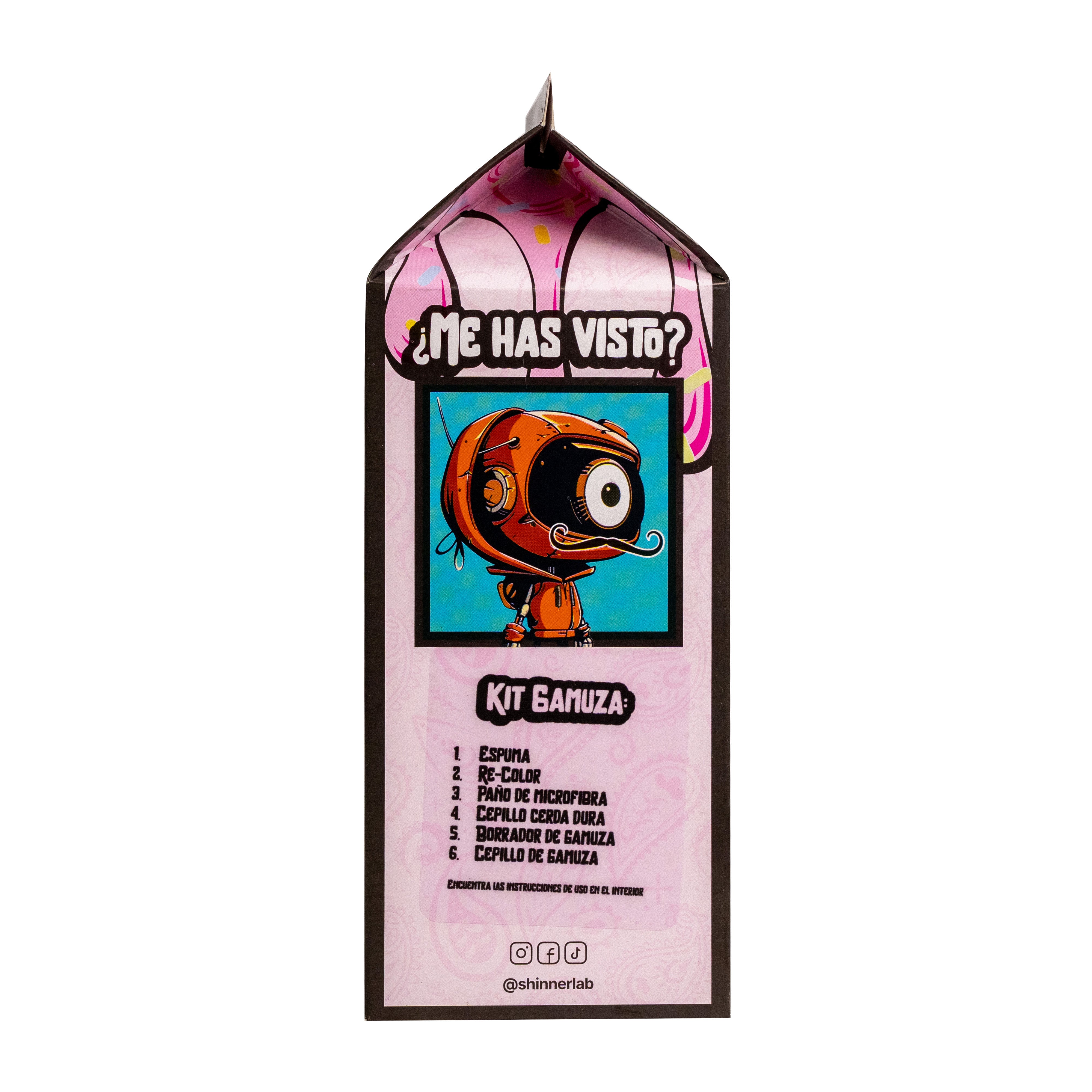 El Shinner Milkshake – Kit Gamuza es un kit completo diseñado para la limpieza, restauración y mantenimiento de materiales delicados como gamuza, nubuck y suede, reuniendo en un solo set todo lo necesario para conservar el calzado en óptimas condiciones, ya que incluye espuma limpiadora para remover la suciedad sin dañar las fibras, Re-Color para revitalizar el tono original, paño de microfibra para una limpieza suave, cepillo de cerda dura para suciedad adherida, borrador de gamuza para eliminar marcas leves y un cepillo especial que ayuda a levantar y devolver la textura natural del material, todo presentado con una identidad gráfica llamativa que refleja el espíritu urbano de la marca y respaldado por la calidad de Shinner, una marca 100 % colombiana enfocada en el cuidado consciente del calzado y en mantener el estilo siempre intacto.