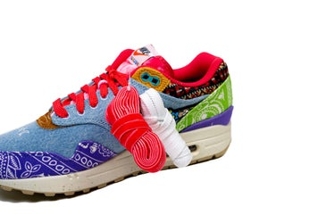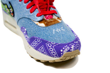 Los Nike Air Max 1 SP Concepts Far Out, lanzados el 26 de marzo de 2022, destacan por su diseño audaz y original. Esta edición especial incluye una caja exclusiva y una serie de accesorios llamativos: bandana, stickers de Concepts, ambientador, vinilo, poncho impermeable y cordones extra en rojo y blanco. Más que un calzado, este lanzamiento celebra la fusión entre estilo y funcionalidad, convirtiéndose en una pieza imprescindible para coleccionistas y entusiastas del streetwear.