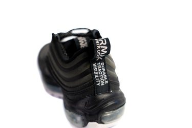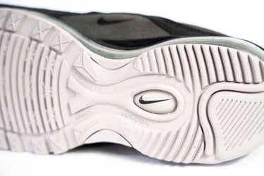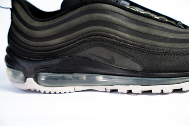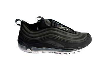 El Nike Air Max 97 Utility Black Cool Grey es una sneaker diseñada para el invierno que combina funcionalidad, durabilidad y estilo. Su parte superior impermeable combina materiales sintéticos grises con textiles negros en un patrón concéntrico, mientras que el guardabarros de cuero negro rugoso y la suela de goma con destellos reflectantes garantizan tracción y visibilidad. Detalles como cordones con toques 3M, refuerzos plásticos y el swoosh lateral, junto con la etiqueta WNTR UTLTY en el talón, refuerzan su estética robusta y urbana. Lanzada el 1 de octubre de 2019, esta versión del Air Max 97 destaca por su originalidad y rendimiento en condiciones invernales.