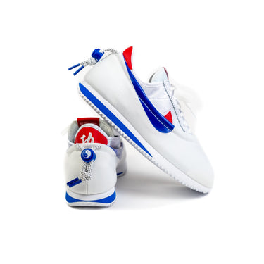 La Nike Cortez SP CLOT CLOTEZ Forrest Gump es una reinterpretación vanguardista de un clásico, fusionando el legado cinematográfico con la innovación del diseño 3-en-1 característico de la colaboración con CLOT. Esta edición permite al usuario elegir entre tres formas de uso: como zapatilla tradicional con cordones y bordado chino de "Kung Fu" en el talón, como slip on al estilo de los zapatos de Kung Fu con sistema de ajuste por cordón, o como un sneaker independiente gracias a sus capas desmontables. Su diseño rinde homenaje al icónico modelo que aparece en la película Forrest Gump, replicando la clásica combinación de blanco con Swoosh rojo en la versión principal, mientras que la capa slip on aporta un toque moderno con Swoosh azul y suela dentada para mejor tracción. Además, las plantillas removibles brindan un extra de confort y versatilidad, consolidando a esta silueta como una pieza única que une cultura pop, funcionalidad y estilo urbano.