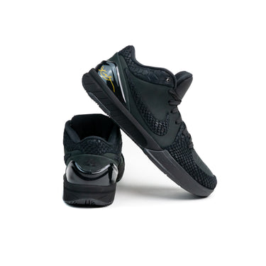 Las Nike Kobe 4 Protro Gift of Mamba, lanzadas el 27 de diciembre de 2023, rinden homenaje al legado inmortal de Kobe Bryant con una majestuosa combinación de negro profundo y dorado universitario. Confeccionadas en gamuza negra y detalles en piel sintética con textura de serpiente en el guardabarros, el cuello y el Swoosh, estas zapatillas fusionan lujo y carácter.