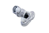 La Nike Dunk Genesis Low RTFKT OG (Edición 6841) es una zapatilla futurista que combina diseño cibernético con elementos removibles, inspirada en la tecnología y los videojuegos. Desarrollada por Nike en colaboración con RTFKT, especialista en moda digital para entornos virtuales, esta edición limitada cuenta con una parte superior en gris lobo con acabado iridiscente y un Swoosh degradado de azul foto a azul claro. Las modificaciones, que recuerdan componentes de naves espaciales, incluyen talón, ojales y jaula de cordones en gris lobo, mientras que los paneles laterales muestran un patrón de cuadrícula, rayos y signos de suma. Lanzada el 21 de junio de 2024, esta pieza exclusiva se limita a 6,841 pares.