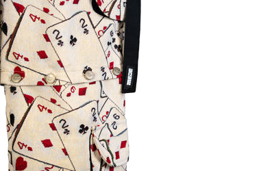 El Cargo Pant Jacko de la marca Mede es una innovadora adición a su colección, destacándose por su audaz diseño que presenta cartas de apuesta a lo largo del pantalón. Esta prenda versátil se transforma fácilmente en un short al despegar las partes de las rodillas, ofreciendo dos estilos en uno. Sin duda, es una pieza esencial que aportará un toque único y funcional a tu guardarropa.