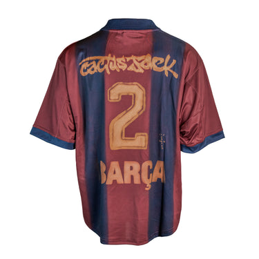 La Travis Scott x Nike x FC Barcelona Retro 2000/01 Home Skeleton Jersey reinterpreta uno de los uniformes más icónicos del club culé con el distintivo estilo experimental de Cactus Jack. Inspirada en la camiseta local de la temporada 2000/01, presenta las clásicas franjas azul y granate con un efecto difuminado que revela una ilustración de esqueleto en el torso, símbolo del enfoque oscuro y vanguardista de Travis Scott. El escudo del FC Barcelona y el logotipo de Nike destacan en el pecho, mientras que en la espalda sobresalen el número 2 y el grafiti “Cactus Jack Barça” en tono deslavado. Lanzada el 9 de mayo de 2025 como parte de la temporada SS25, esta pieza captura la esencia del pasado futbolístico del Barça y la fusiona con la energía creativa de la moda contemporánea.