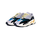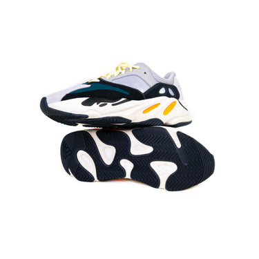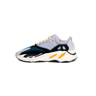 El Yeezy 700 Boost Wave Runner marcó un antes y un después en la evolución de la línea Yeezy, al llevar la estética minimalista de sus primeros modelos hacia un diseño más robusto y de inspiración noventera. Este modelo, que sirvió de puente entre los corredores de punto como el 350 y el estilo más rudo y urbano del 550, destaca por su parte superior combinada de malla gris, cuero y detalles en gamuza negra, con inserciones de malla en tonos azul verdoso. En la base, su distintiva suela Boost, gruesa y cómoda, se complementa con toques de color naranja que añaden un contraste vibrante. Originalmente lanzado en noviembre de 2017 y relanzado en marzo de 2022, el Yeezy 700 Wave Runner sigue siendo un referente dentro del mundo de las zapatillas deportivas de alto diseño.