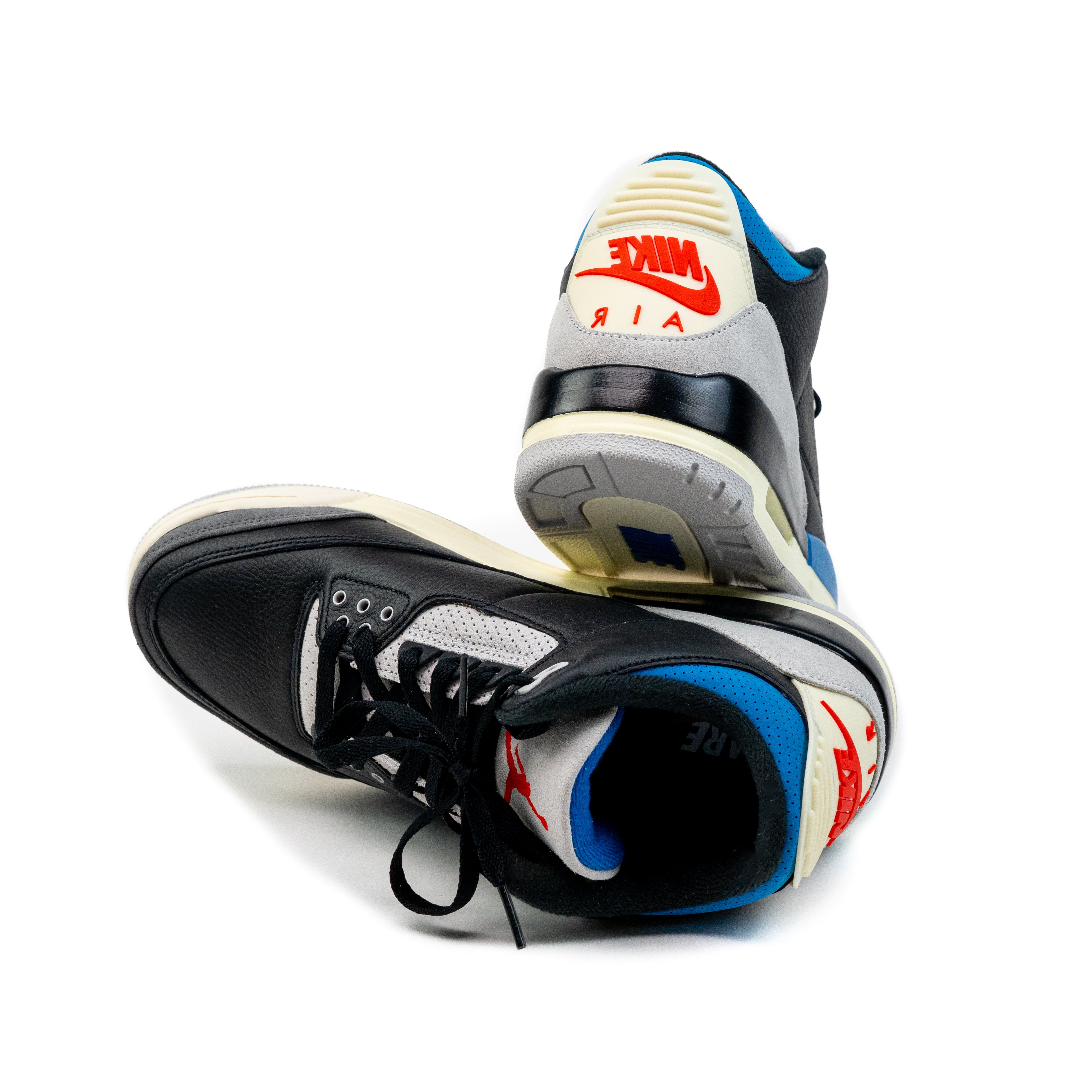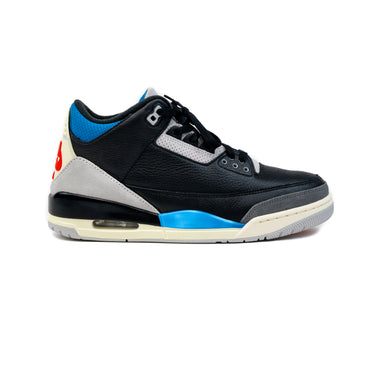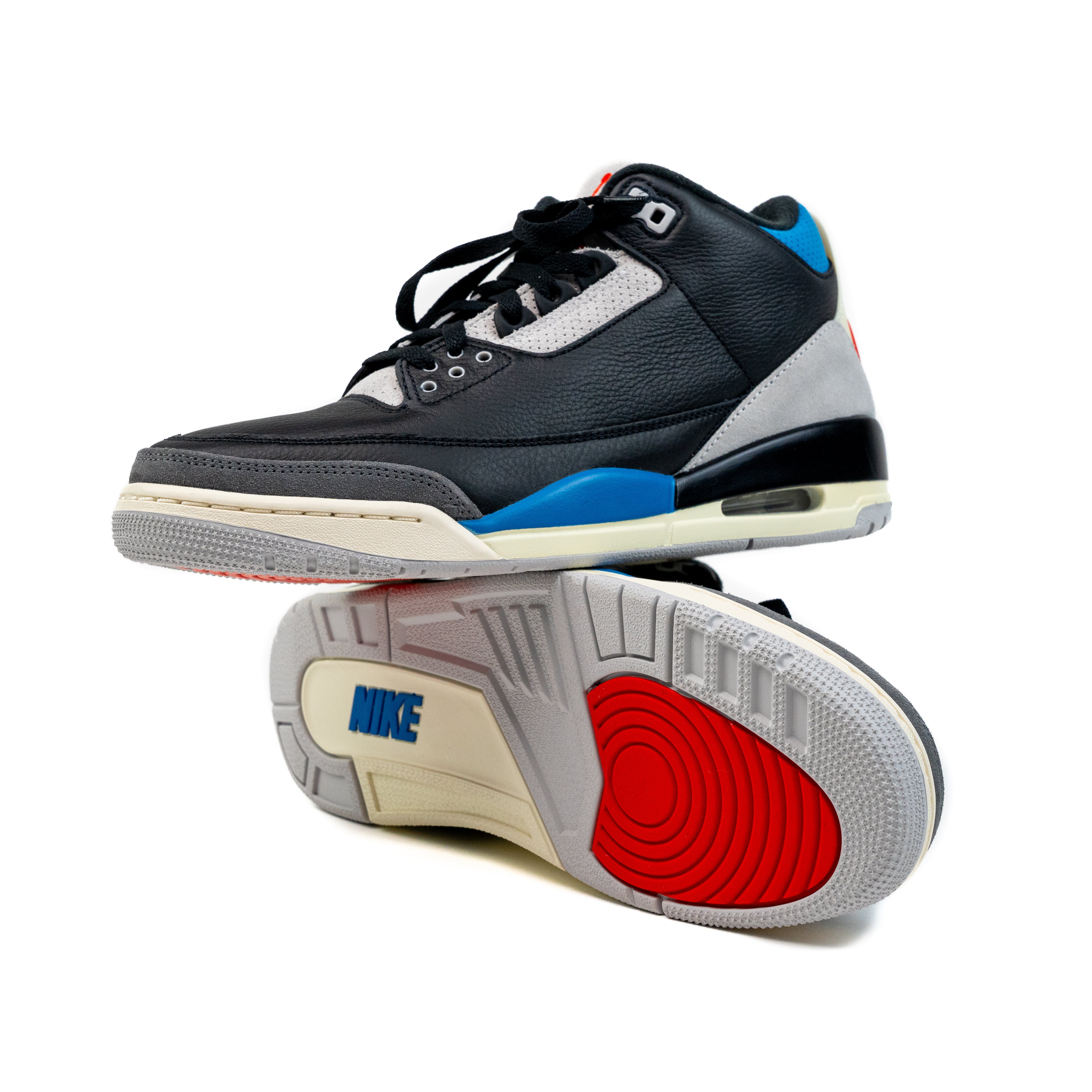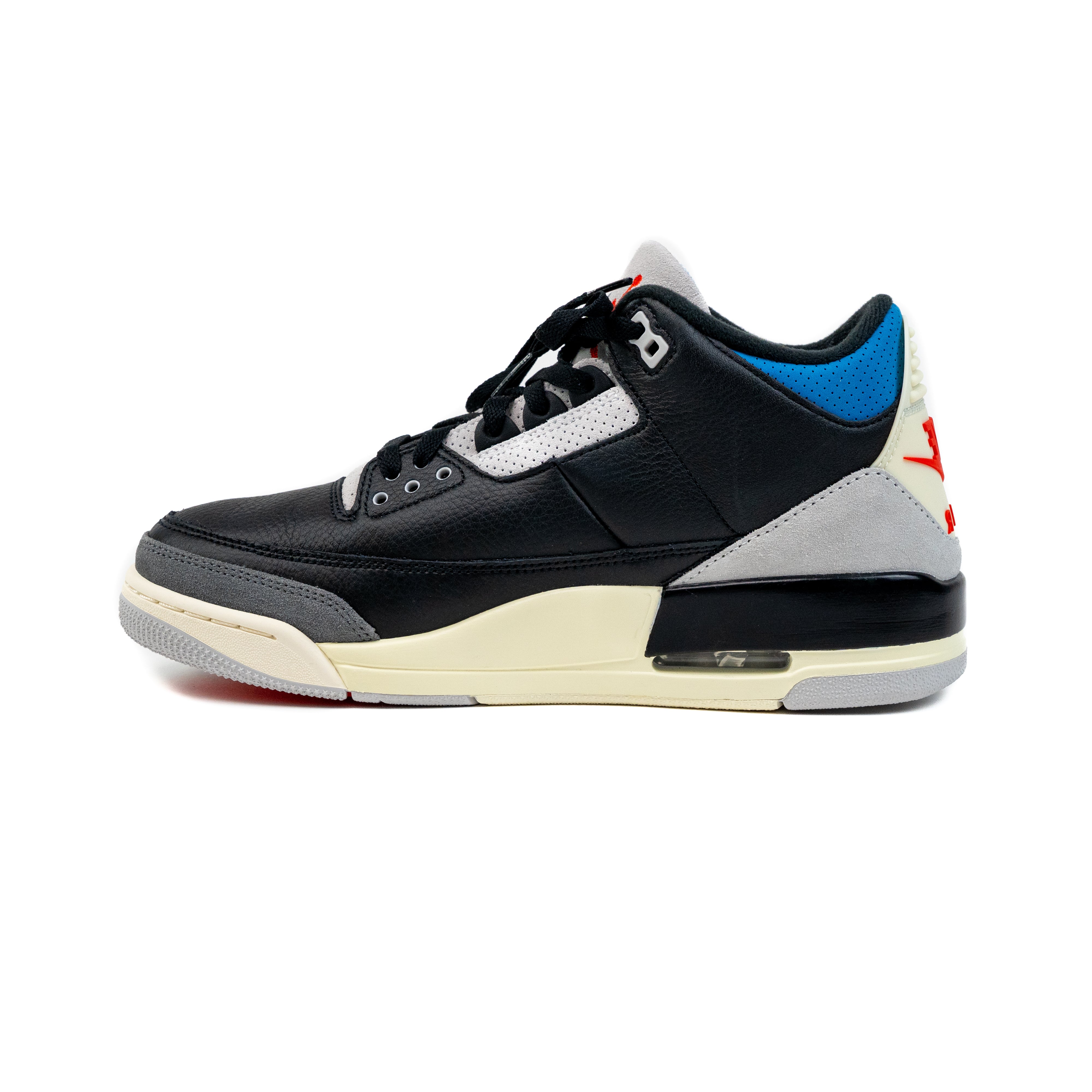 Las Jordan 3 Retro OG Rare Air, con fecha de lanzamiento el 30 de mayo de 2025, celebran el legado de la línea Jordan con una mezcla de colores audaz y nostálgica: el negro dominante se combina con vibrantes toques de Chile Red, Neutral Grey, Military Blue y Coconut Milk, dando lugar a una paleta rica en contrastes que honra tanto el pasado como la evolución de la silueta.