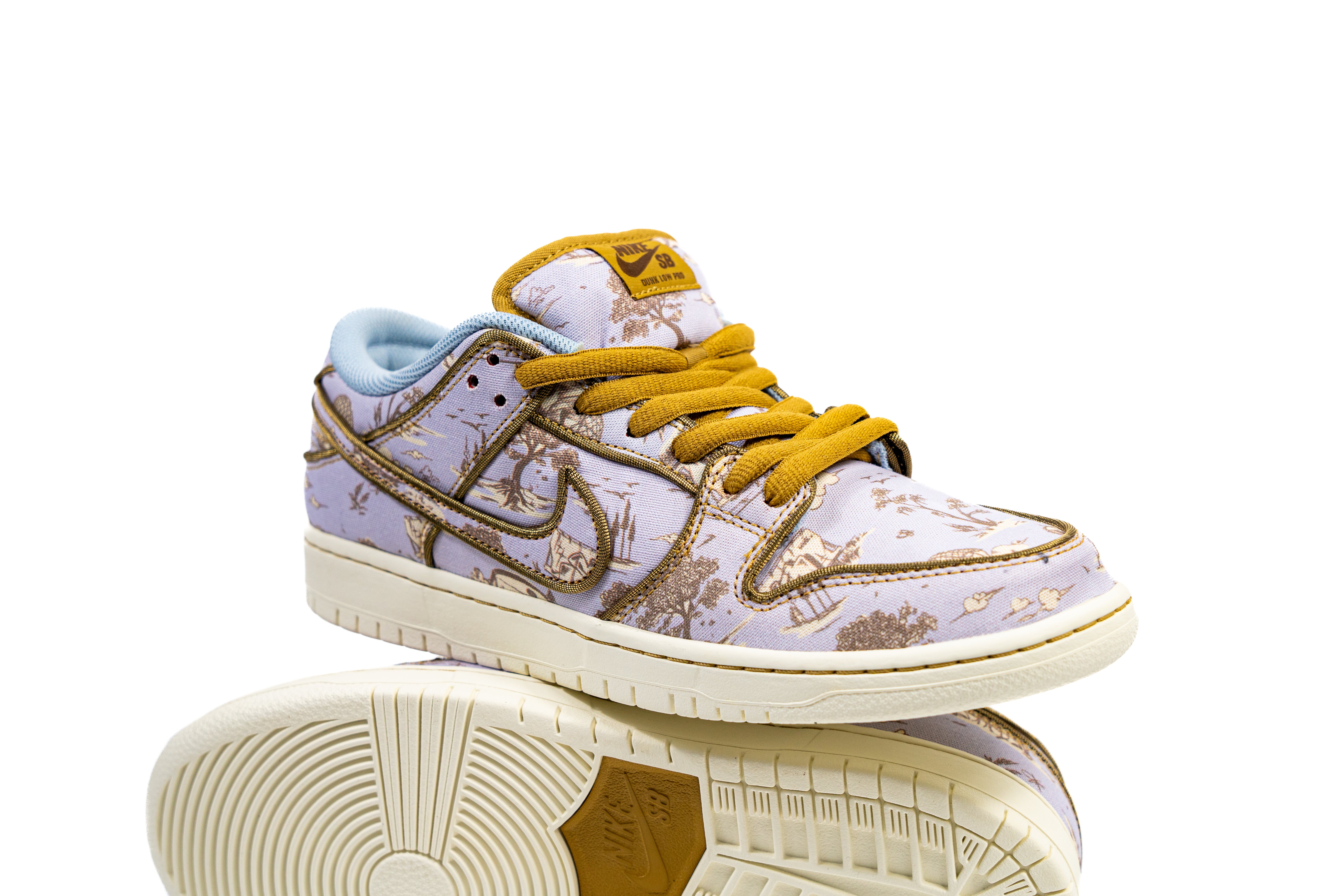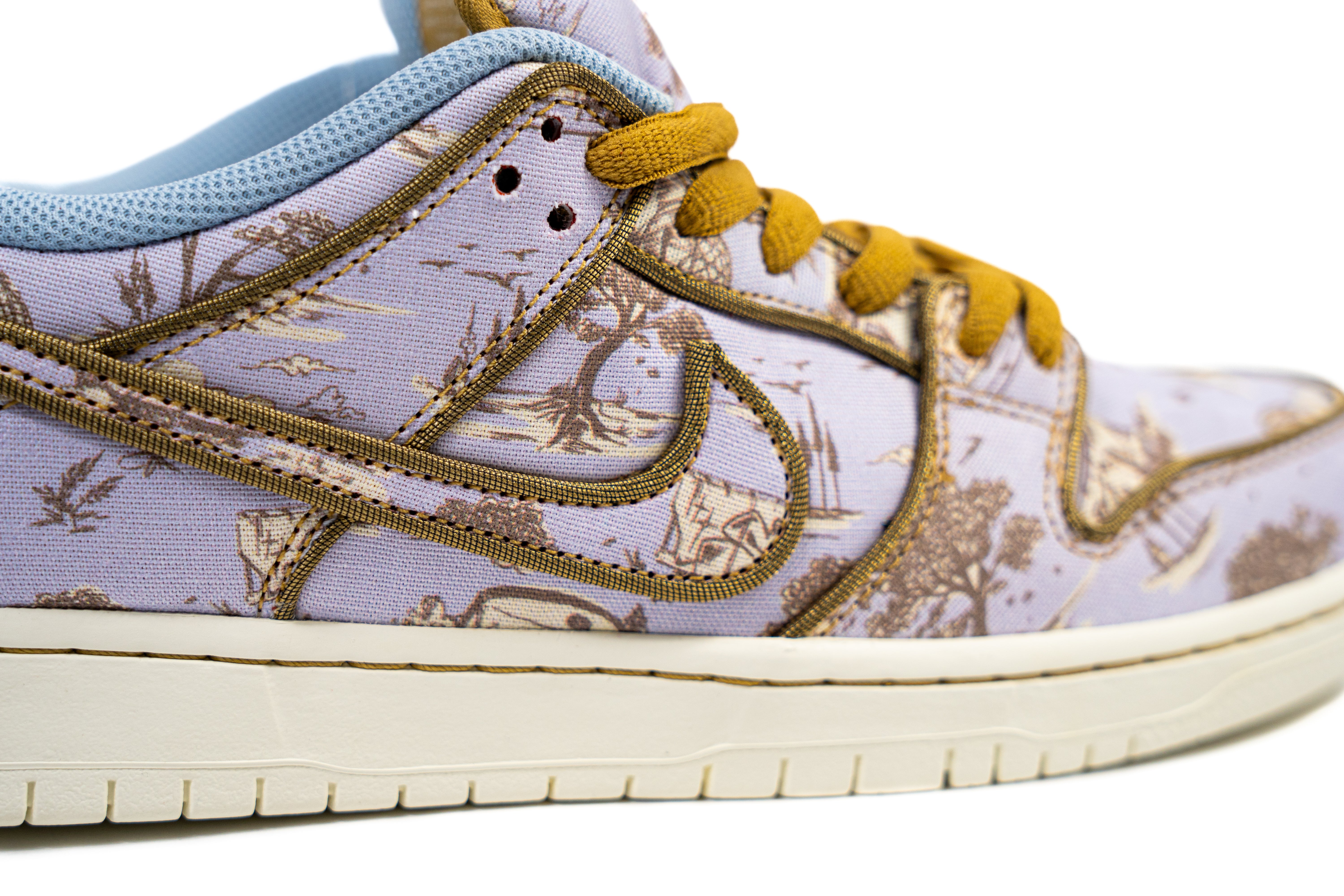 El Nike SB Dunk Low Premium City of Style es una fusión entre arte y skate que transforma un clásico en una pieza de colección. Su parte superior en tonos lavanda presenta un estampado tipo toile que evoca paisajes urbanos y arquitectónicos, creando un contraste elegante con los cordones y costuras en color mostaza. La textura del lienzo añade un toque artesanal, mientras la entresuela en tono crema y la suela de goma completan un look sofisticado sin perder el ADN del skate. Un par que celebra la expresión creativa y el estilo individual en cada paso.