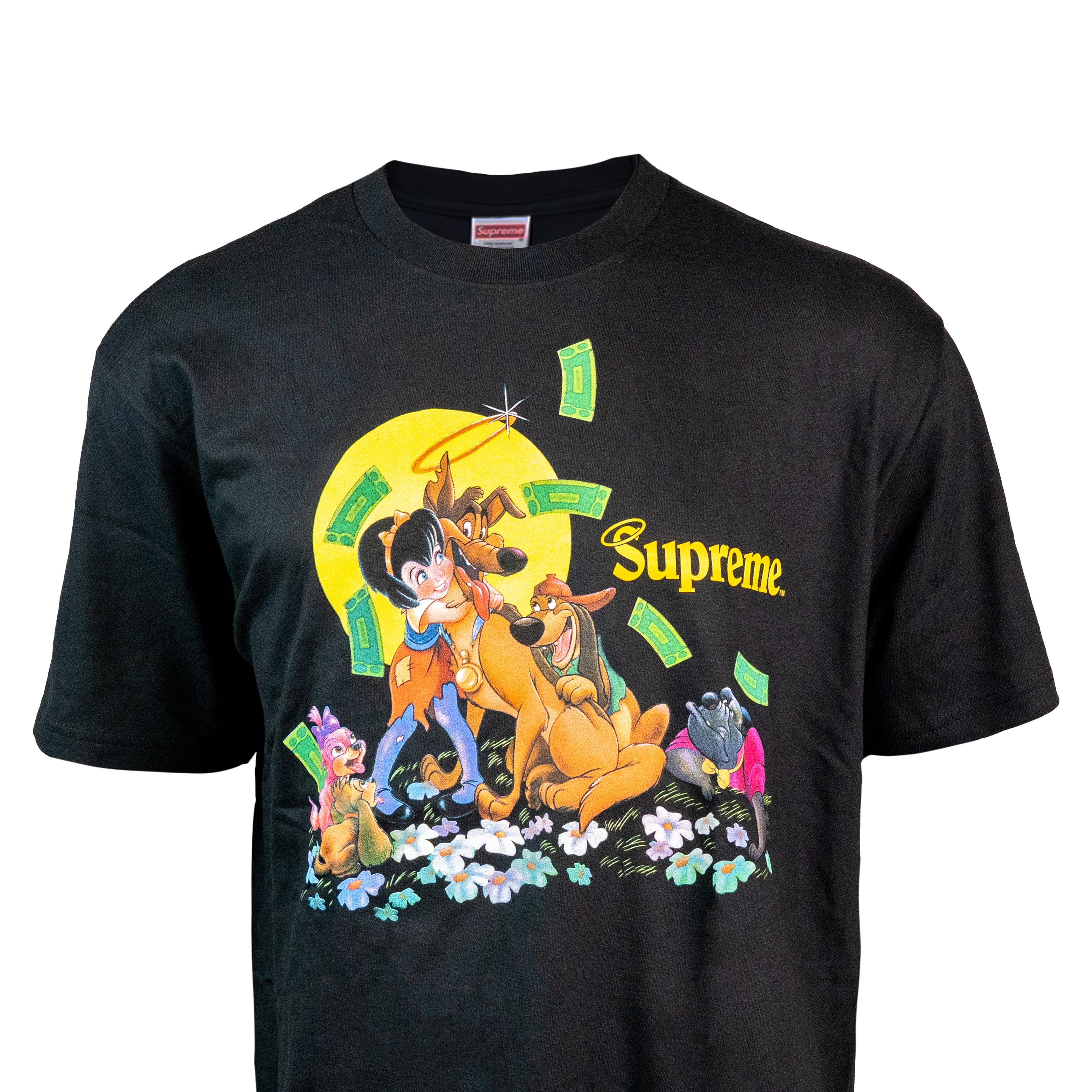 La Supreme All Dogs Go To Heaven Tee celebra la nostalgia noventera con una mezcla perfecta de arte animado y estilo urbano. Fabricada en algodón de alta calidad, esta camiseta presenta un vibrante gráfico frontal inspirado en la clásica película animada, con personajes llenos de vida rodeados de billetes verdes bajo un fondo luminoso que resalta el icónico logo de Supreme. Su diseño colorido sobre una base negra la convierte en una prenda llamativa y cargada de actitud, ideal para quienes combinan el espíritu retro con la esencia contemporánea del streetwear.