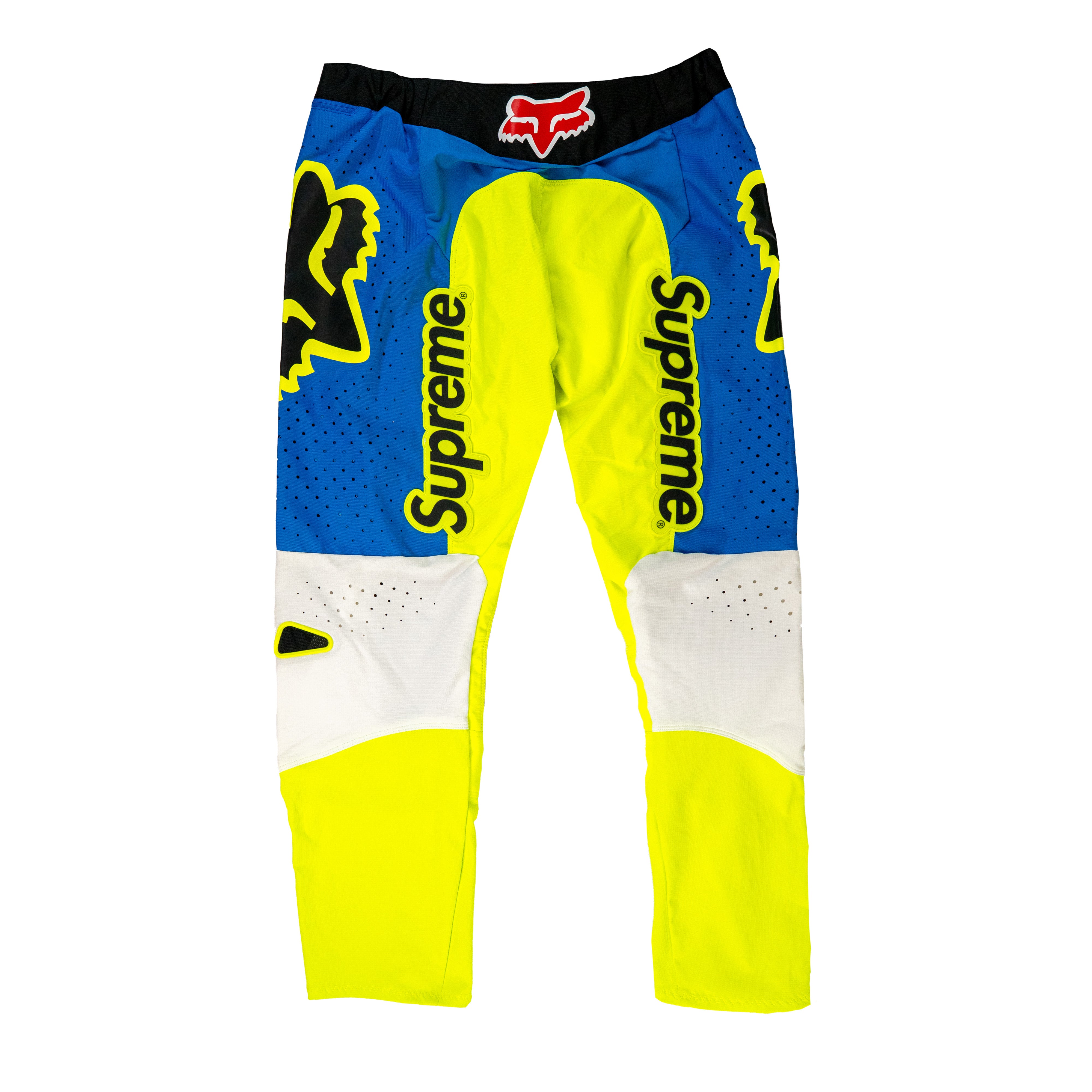 El Supreme Fox Racing Moto Pant destaca por su audaz combinación de colores y su diseño técnico pensado para el máximo rendimiento. Con una base en tonos azul, blanco y amarillo neón, este pantalón fusiona el ADN de Fox Racing con la estética inconfundible de Supreme. Fabricado en materiales resistentes con paneles perforados para mejorar la ventilación, incorpora refuerzos estratégicos en las rodillas y zonas de alto desgaste, garantizando durabilidad y comodidad. Los logotipos de ambas marcas se distribuyen de forma prominente a lo largo de la prenda, proyectando una energía vibrante que une el espíritu extremo del motocross con el estilo urbano contemporáneo.