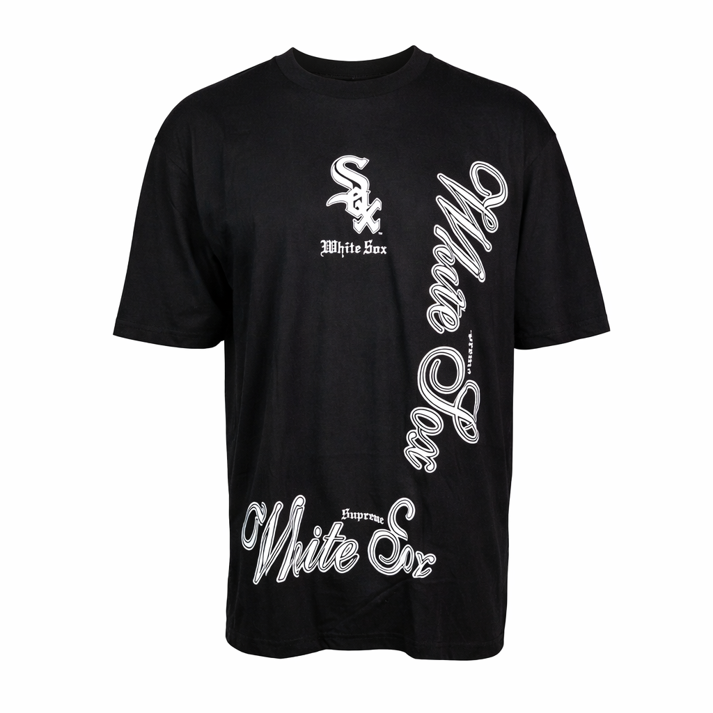 La Supreme MLB Teams Sox Tee en color negro, perteneciente a la temporada FW25, destaca por su diseño gráfico potente que rinde homenaje al béisbol clásico con un enfoque claramente urbano, combinando tipografías de gran impacto y el icónico estilo White Sox distribuidos de forma dinámica en el frontal, mientras que la parte trasera mantiene una estética limpia con el logotipo de Supreme y el emblema oficial de la MLB, logrando un equilibrio perfecto entre protagonismo y sobriedad; confeccionada en algodón de tacto suave y corte cómodo, es una camiseta versátil y fácil de llevar que se convierte en una pieza clave para quienes buscan identidad, autenticidad y carácter en su outfit diario, lanzada oficialmente el 18 de diciembre de 2025.