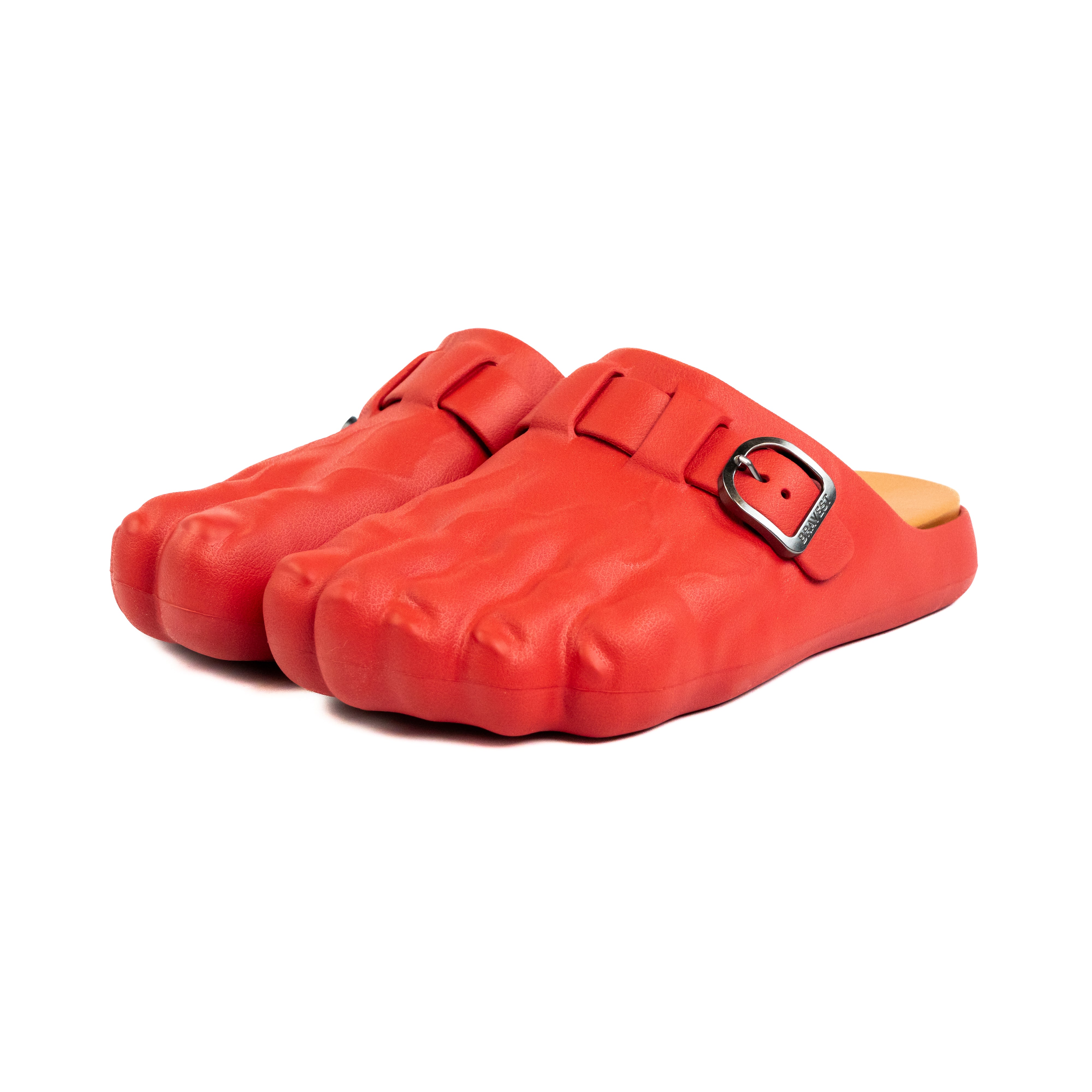 Las Bravest Studio Red Hulk Foot Clogs combinan un diseño atrevido con una estética divertida e inolvidable, inspiradas en la fuerza y energía del icónico Hulk pero reinterpretadas con un toque moderno y urbano. Su silueta tipo clog destaca por la textura marcada en la parte frontal, un vibrante tono rojo y una correa lateral con hebilla metálica que agrega carácter y ajuste. Ligeras, cómodas y rebeldes, son el tipo de pieza que convierte cualquier outfit en una declaración de estilo.